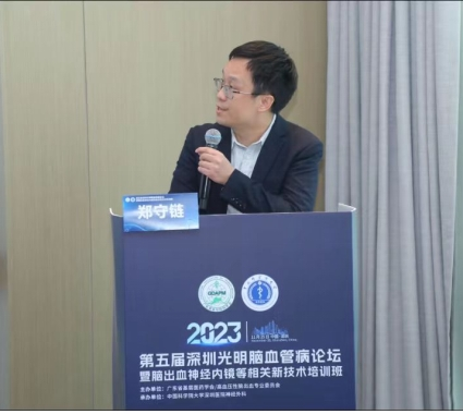 中山大学第七附属医院郑守链教授了《脑血管病介入治疗的新进展》讲述了目前脑血管病介入治疗的新方向和前沿发展动态。
