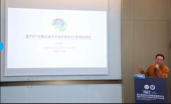 深圳市光明区人民医院许海东教授讲授了《基于DTI对脑血管手术治疗前后CST影响的研究》从影像角度讲解了脑血管疾病术前术后功能磁共振的表现,为手术策略提供可视性影像支持。