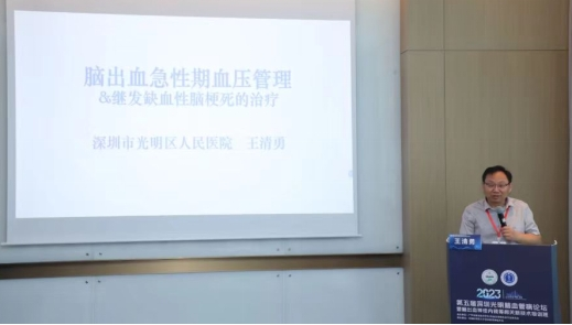 另外深圳市光明区人民医院王清勇教授讲授了《脑出血急性期血压管理策略及继发性脑缺血梗塞治疗》,强调了血压管理在脑出血疾病治疗中的重要性。