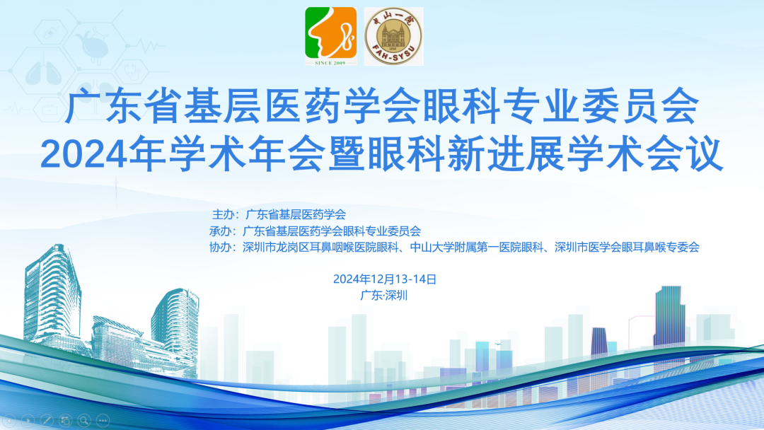 2024年12月13-14日 “广东省基层医药学会眼科专业委员会2024年学术年会暨眼科新进展学术会议”在美丽的鹏城深圳市隆重举行。本次会议旨在加强基层眼科领域的学术交流与合作,共同推动广东省乃至全国基层眼科领域的发展。本次会议由广东省基层医药学会主办,广东省基层医药学会眼科专业委员会承办,中山大学附属第一医院眼科、深圳市龙岗区耳鼻咽喉医院眼科联合协办,得到了广东省眼科界同仁的广泛支持和积极参与。